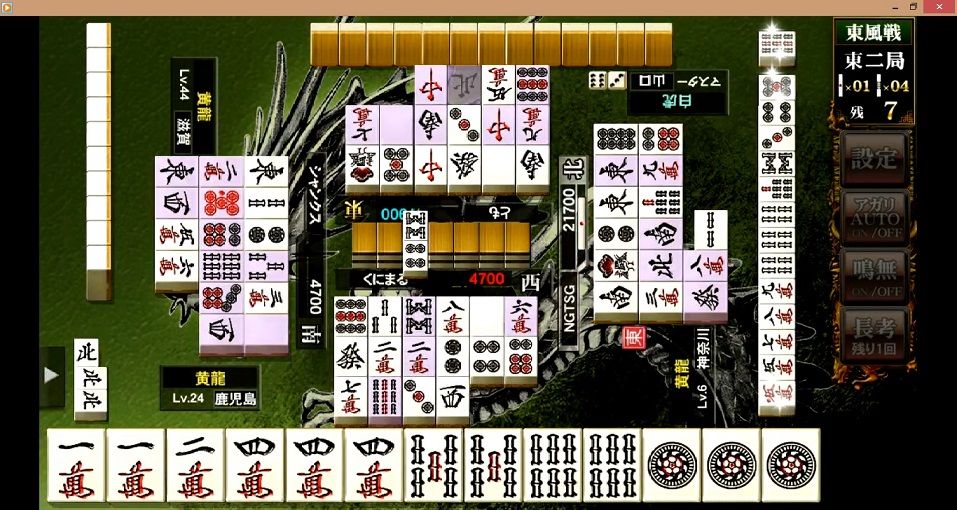 残44 2筒を自模り跳満12,000点を自摸上がる。